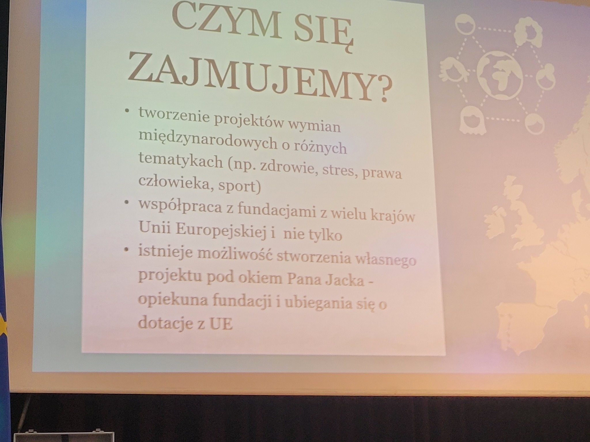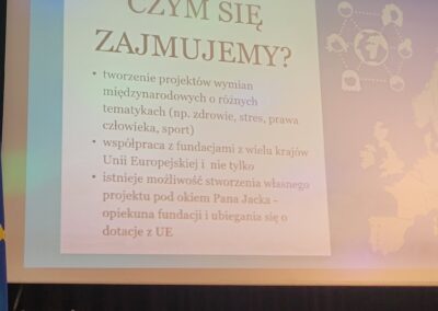 Ossolińczycy uczestniczyli dziś w spotkaniu z panem Jackiem Bednarkiem z Dolnośląskiego Centrum Wolontariatu. Spotkanie dotyczyło wymiany młodzieży Erasmus. Panu Jackowi towarzyszyły nasze dwie absolwentki Marysia i Julia, które opowiedziały o projektach, w których brały udział. Ich przygoda z projektami Erasmus zaczęła się w Ossolińczyku od podobnego spotkania w naszej auli kilka lat temu. Dziewczyny opowiedziały o warsztatach, poznawaniu ciekawych ludzi, zwiedzaniu, dodatkowych aktywnościach i krajach biorących udział w ich dotychczasowych projektach. Pan Bednarek wyjaśnił na czym polegają wymiany młodzieży Erasmus i co należy zrobić, żeby wziąć w nich udział.