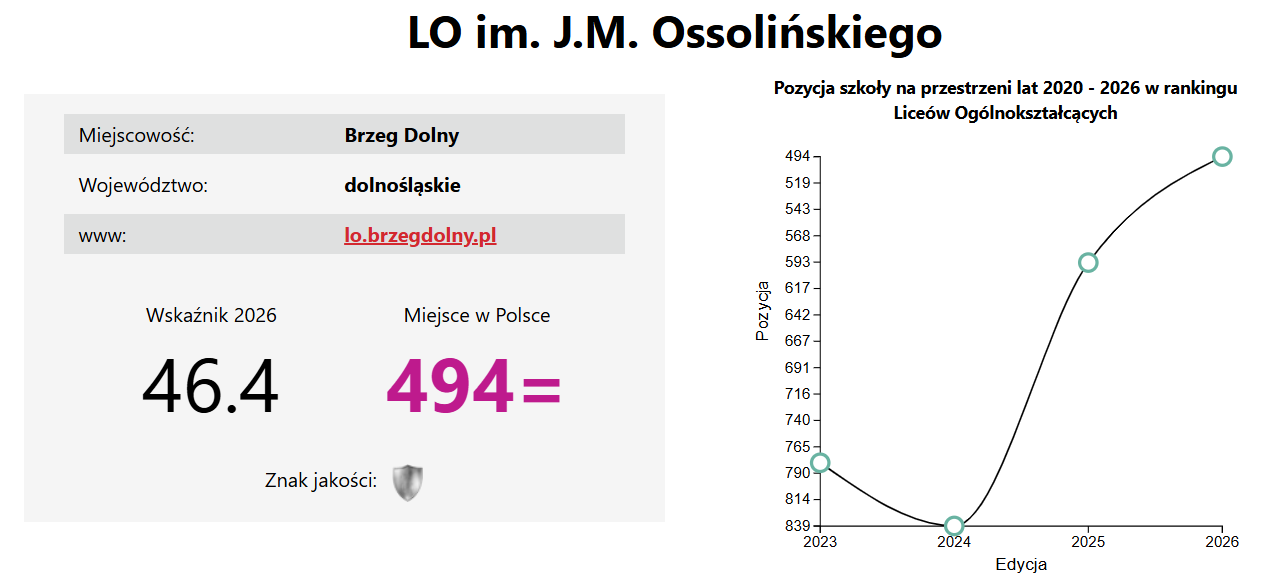 Ossolińczyk trzyma poziom a nawet pnie się w górę! W najnowszym Rankingu Liceów Perspektywy 2026 zdobyliśmy Srebrną Odznakę! Brawo My! Każde docenienie wysiłku i pracy naszych uczniów i nauczycieli jest dla nas miłe.