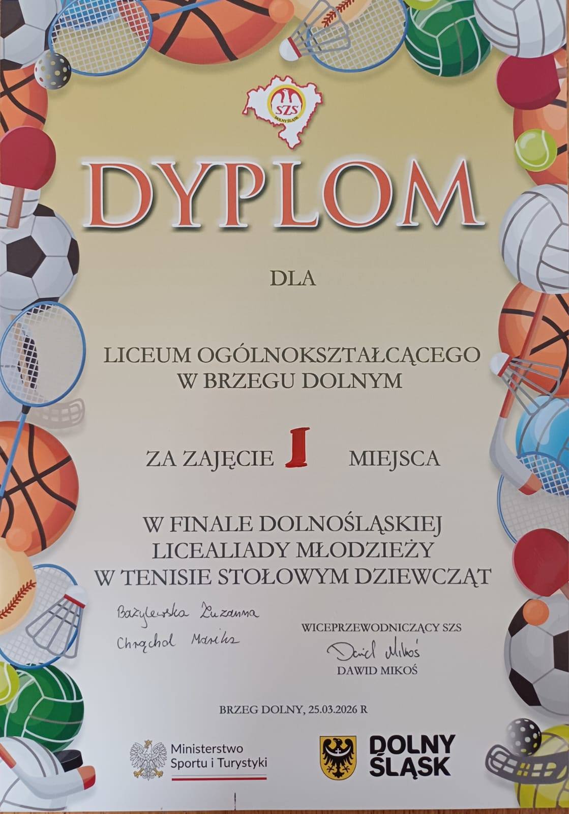 W rozegranym w Brzegu Dolnym turnieju pokonały m.in szkoły z Polanicy Zdrój, Kamiennej Góry i Wrocławia. W meczu o pierwsze miejsce zwyciężyły ZSZ Brzeg Dolny 3:0.