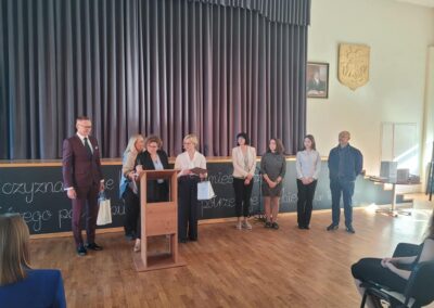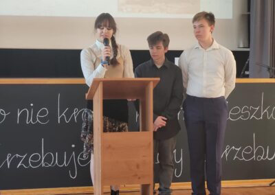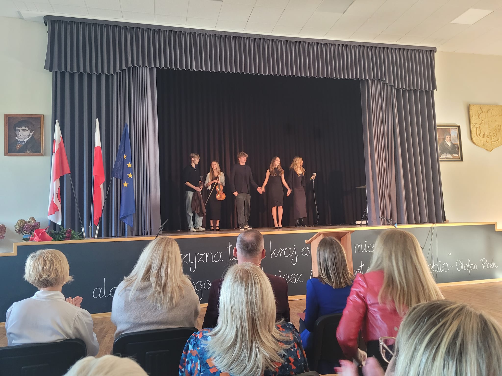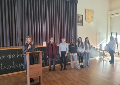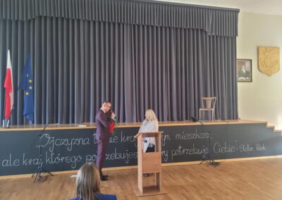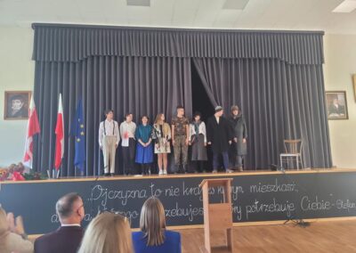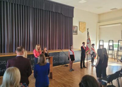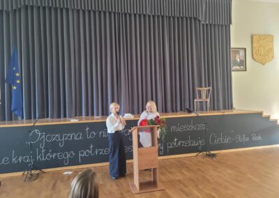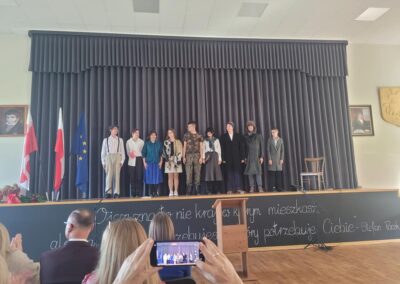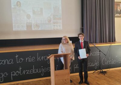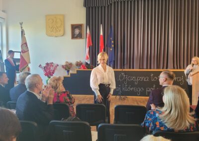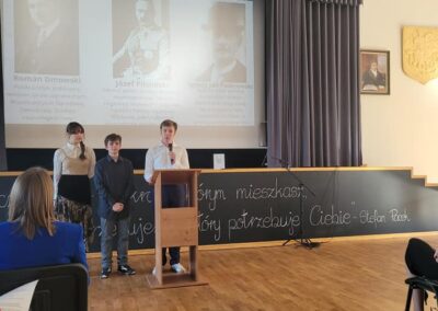 XXXII Biesiada Ossolińczyków już za nami. To zawsze wielkie święto w naszej szkole i tak też było tym razem. W uroczystości brali udział zaproszeni goście m.in. burmistrz Brzegu Dolnego Ireneusz Fura, posłanka na Sejm Jolanta Niezgodzka, wicedyrektor Zakładu Narodowego im. Ossolińskich Dorota Sidorowicz-Mulak, kustosz Narodowej Biblioteki Ossolineum Jan Górecki, wizytator Kuratorium Oświaty we Wrocławiu Małgorzata Nehrebecka, przewodniczący Rady Miejskiej Mirosław Dawidowicz, wiceprzewodnicząca Rady Miejskiej Maria Czykiel, dolnobrzescy radni, dyrektorzy szkół, nauczyciele, uczniowie, absolwenci, rodzice. Tegoroczna Biesiada odbyła się pod hasłem ” Ojczyzna to nie kraj, w którym mieszkasz, ale kraj, którego potrzebujesz i który potrzebuje Ciebie ” i to właśnie temat patriotyzmu dominował w wystąpieniach zaproszonych gości. Jak dawniej postrzegany był patriotyzm przypomnieli nam również w swojej prezentacji uczniowie, podzielili się również tym, jak oni sami rozumieją obecnie patriotyzm i czy czują się patriotami. Nie zabrakło stałych elementów Biesiady czyli ślubowania klas pierwszych, zaprzysiężenia nowego Samorządu Uczniowskiego oraz wręczenia tradycyjnych odznaczeń. Medal „Serce i umysł dla szkoły” otrzymała pani Edyta Nestorowska, a odznakę „Złotego Ossolińczyka” otrzymały nasze absolwentki Alicja Czajowska, Wiktoria Golus, Apolonia Szumacher, Nina Wróbel, stypendium Prezesa Rady Ministrów otrzymał, trzeci raz z rzędu, Wiktor Wolski. Wręczono również nagrody w konkursie plastycznym o patronie szkoły, a główną nagrodą jest, ufundowany oczywiście przez Ossolineum, weekendowy pobyt dla zwycięzcy wraz z rodziną, w apartamentach Ossolineum. Tradycją jest, że uroczystość uświetnia występ naszych szkolnych aktorów z grupy teatralnej pod opieką pani Aleksandry Kucharskiej. Przyzwyczaili nas już oni do wysokiego poziomu swoich występów i tym razem również nie zawiedli. Byli po prostu WSPANIALI! Należy dodać, że scenariusz do dzisiejszego przedstawienia napisał uczeń klasy 4a Marcel Węglarz! Marcel, czapki z głów i duma! Za całą oprawę muzyczną Biesiady odpowiadali Ossolińczycy, podczas porannej mszy wystąpił zespół szkolny przygotowany przez panią Katarzynę Paszkowską, uroczystości w auli im. S.B. Lindego rozpoczął występ Weroniki Bogdańskiej (skrzypce), Leny Semczuk, Leny Adamskiej, Kacpra Kraty oraz Macieja Janusia (śpiew), a na zakończenie uroczystości w auli, przepięknie zaśpiewały dla nas laureatki Konkursu Piosenki Obcojęzycznej, Nina Pawlak (I miejsce) oraz Kiara Kołtun (II miejsce). To było CUDOWNE! Mamy niesamowicie zdolne dzieciaki w tym naszym Ossolińczyku. Po części oficjalnej przyszedł oczywiście czas na biesiadę w dosłownym znaczeniu tego słowa, przekąski, ciasto i kawę. Dziękujemy, że świętowaliście dziś z nami i do zobaczenia za rok.